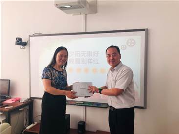 杨教授感谢大家的祝福并发表了情深意切的退休感言,她回顾了自己的工作历程,表示会一直关心学院的建设和发展。最后富院长代表学院对杨教授显著成绩和突出贡献给予肯定,对她多年来的辛勤劳动与无私奉献表示诚挚的感谢,并代表学院送上纪念品。