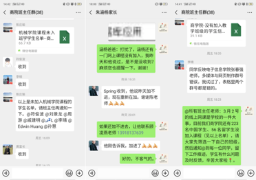 为了保障beat365亚洲版官网2827名学生“选得上,学得了”,所有辅导员和带班班主任认真领会学校关于线上教学的要求,做好任课老师和班级同学的传声筒,不让一个学生掉队。为了更好地掌握疫情防控期间学生存在的困难与需求,帮助有需要的同学们暂缓燃眉之急,陈秀春老师发动专兼职辅导员通过微信、电话、QQ等方式与同学们和家长取得联系,及时了解学生们存在的问题,是否有稳定的网络、是否有合适的设备、是否要用流量等,确保不遗漏任何一名同学,确保详细的了解到每一名同学的情况,为同学们排忧解难。
