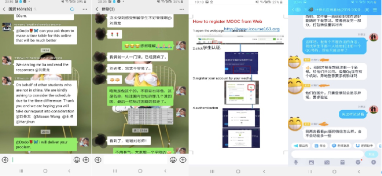 作为学校留学生人数最多的学院,如何协调管理学院87名国际学生如期开展网上学习,成为摆在全院师生面前的一项紧迫任务。学习平台皆为中文,国际学生看不懂怎么办?学院87名国际学生,有52人在国外怎么办?境内手机号码在国外无法注册绑定教学平台怎么办?一切难题,只有在实干中才能破解。针对语言困难,学院辅导员刘景龙和任课教师一起,制作英文指南,指导学生平台使用;为解决跨国教学难题,他主动与教务、教师、学生沟通对接,及时了解师生需求,密切掌握学生入驻情况,一对一指导学生注册;《计算机应用基础》这门课全班29个学生只有8人在国内,境外学生无法注册平台,面临无法如期网上开课的问题,刘老师主动找任课教师一起想办法,使得问题得以解决。在师生的共同努力下,学院国际学生基本能如期开展网上学习。居家办公对及时有效地开展工作造成了一定困难,刘老师有时难免着急,但看到家人每天冒着被传染的危险,早出晚归到车站抗疫一线值班,他又不断提醒自己一定要稳住,把工作做扎实。他说:“作为党员,我们必须与大局同频,与时代同步,把工作当事业干,把事业当使命干。我坚信,我们一定能打赢这场抗疫防控阻击战”。