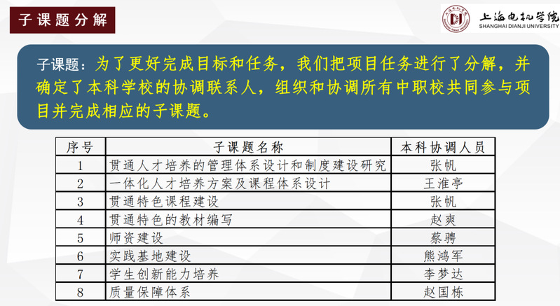紧接着,熊鸿军老师就“子课题6:实践基地建设”展开了详细解读,特别强调了共建实践基地的必要性。其中,对于共建实践基地的目标要求,熊鸿军老师还制定了实践基地建设任务清单,并注明了验收标准及时间节点。