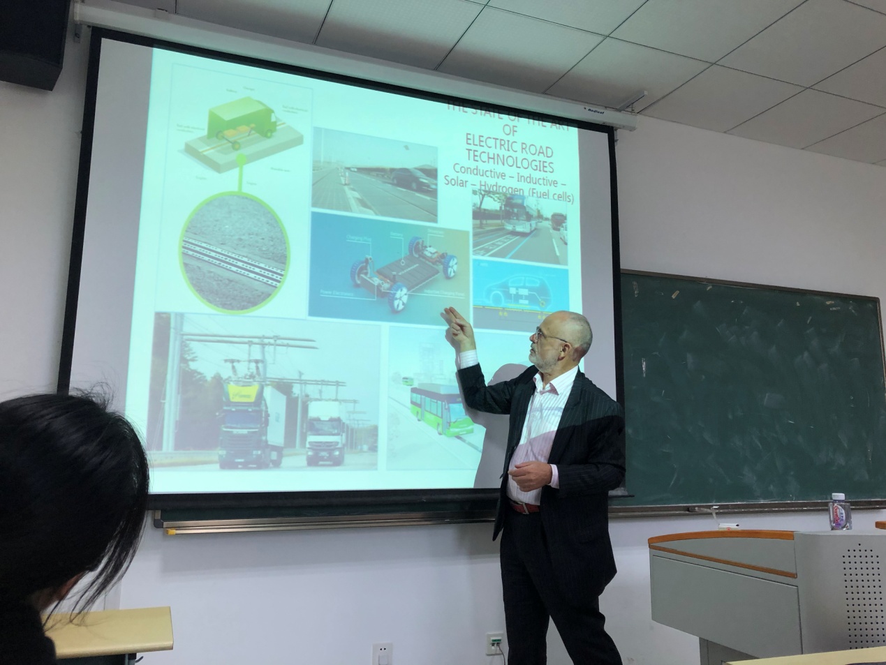 Based on the research of electrified road system, Professor Mike Combines the development of electric vehicle, electrified transportation system and intelligent technology of smart city and community from the perspective of transportation electrification. This paper expounds the future of the electrified traffic system, the design and development of the whole urban ecosystem, and the transformation and development of the whole traffic system. Graduate Students at the conference said that this lecture closely related to the international forefront of the field, for students to bring a professional international perspective, let everyone benefit. At the same time, Professor Mike's "serious and humorous" teaching style was also praised by the students.