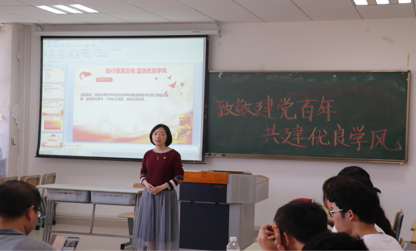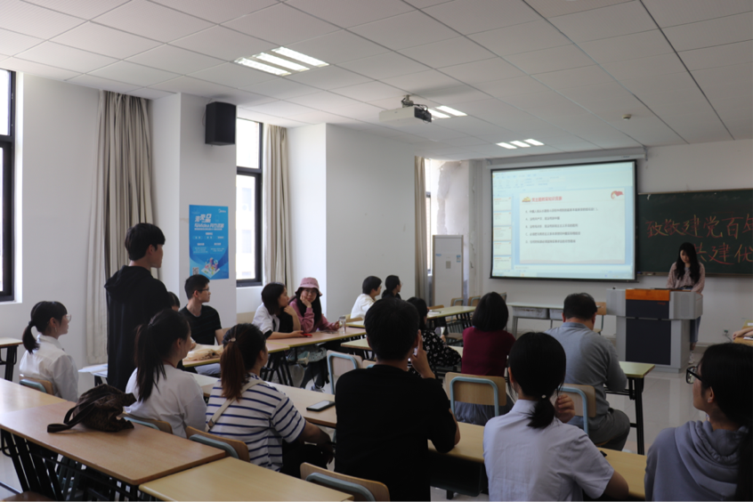 第三环节知识竞赛涵盖了党的基本知识,加强同学们对党的了解,促使同学们积极向党组织靠拢。竞赛分为选择题,抢答题两种形式,答题结束后,根据综合成绩决胜出一等奖一名,二等奖三名,三等奖五名,并颁发荣誉证书和奖品。经过激烈而又精彩的答题后,竞赛决胜出了前几名,并邀请了在座的魏苗菊老师,周游老师和陈庄瑜老师为同学们颁发精美奖品。在活动的结尾,由beat365亚洲版官网学风建设指导教师魏苗菊老师为我们做结语总结,宣扬优良学风,传承红色基因,展望美好未来。