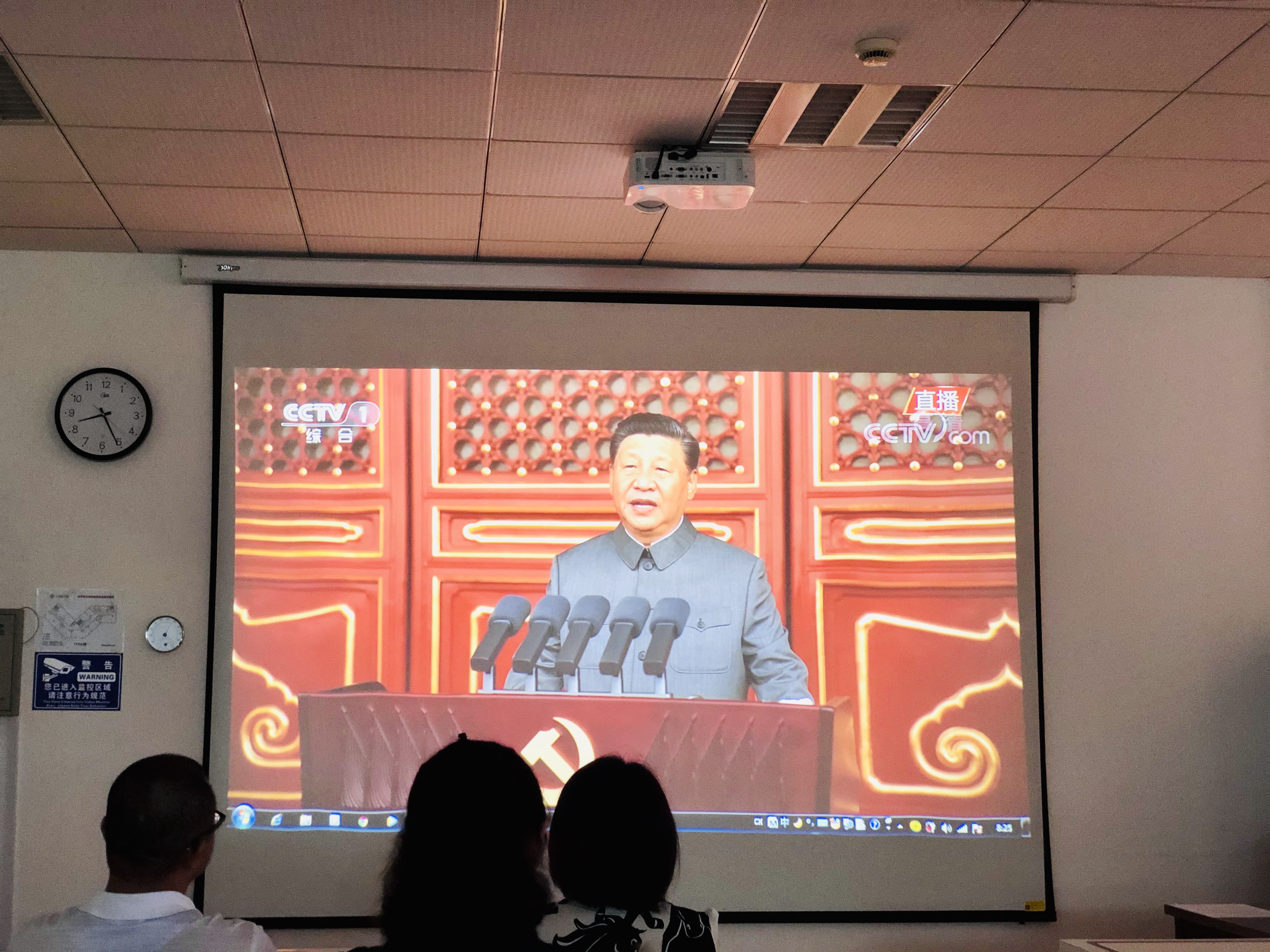 一世纪风雨兼程,九万里风鹏正举。7月1日上午8时,举世瞩目的庆祝中国共产党成立100周年大会在北京天安门广场隆重举行,中共中央总书记、国家主席、中央军委主席习近平发表重要讲话。beat365亚洲版官网全体教职工于学院楼521共同收看盛况,见证党的百年荣光。