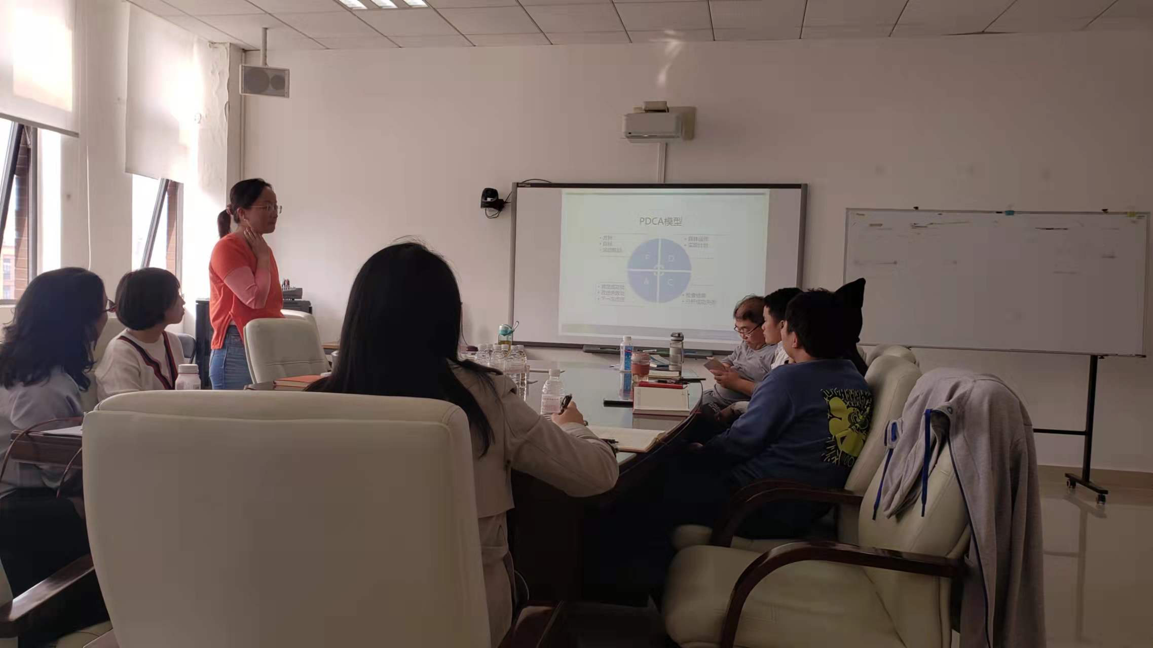 会上,沈瑾教授向与会人员详细介绍了PDCA模型的内容与价值,与会人员也进行了热烈的讨论。PDCA循环应用科学的统计观念和处理方法,是管理者推动工作、发现问题和解决问题的有效工具,其八个步骤为:找问题、找原因、找要因、定计划、执行、检查、总结经验、提出新问题,提出新问题又进入下一个循环,周而复始,阶梯式上升。辅导员科学运用PDCA模型指导自身工作,有利于提升工作的条理化、系统化、科学化水平,不断改进各种不足,提升工作的实效性。同时,持续保持对日常工作系统化、逻辑化的反思、总结与提炼,有利于进一步推动学院辅导员队伍由实践型向实践研究型方向转变。