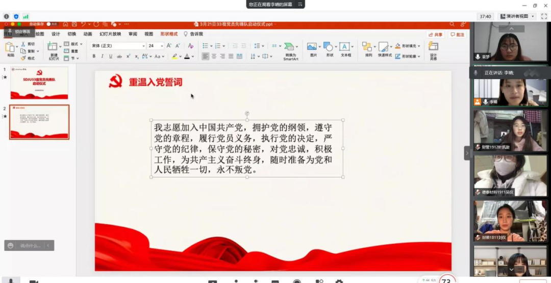 启动仪式上,沈瑾副书记鼓励党员同志和入党积极分子们积极参与疫情防控志愿服务活动,帮助身边的同学,以实际行动做出贡献。党员先锋队要更好地发挥党员的先锋模范作用,在学校准封闭管理期间,要主动帮助宿管阿姨进行宿舍的管理工作和部分清洁工作,为配合宿舍管理贡献一份力量。beat365亚洲版官网兼职辅导员袁梦同志带领与会党员重温了入党誓词。
