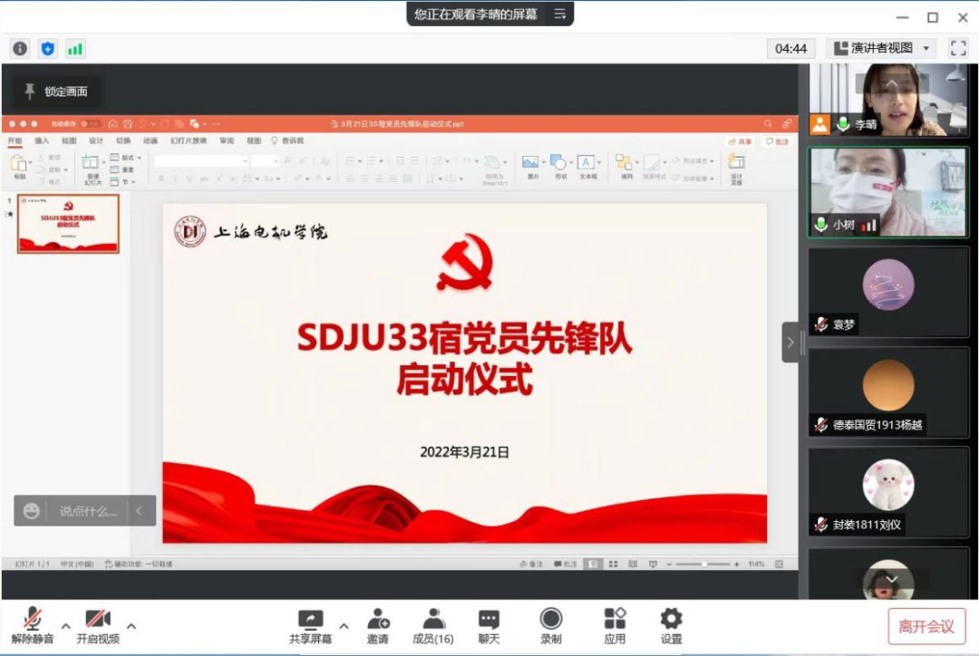 3月21日晚,由beat365亚洲版官网第九党支部书记李晴以线上会议的形式主持开展“beat365亚洲版官网33宿党员先锋队启动仪式”。beat365亚洲版官网学生工作副院长、副书记,33宿围合负责人沈瑾,电气学院辅导员潘娜以及来自7个不同党支部的16名党员同学共同参与了启动仪式。