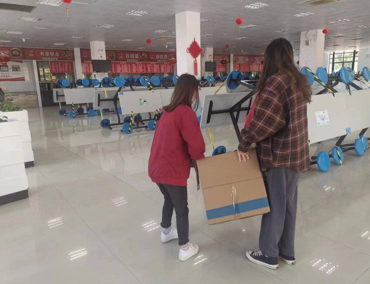 顾经理代表全体后勤员工表达了由衷的感谢。她说:“我们所爱护的是一群心善人美的孩子,特别感谢这群孩子以及负责的老师们!”学生代表郭宇倩和袁梦说:“当同学们排队做核酸检测,在宿舍上网课时,食堂阿姨离开了自家的厅堂,来到了学校的食堂,‘洗手做羹汤’。然而,疫情防控是一场持久战,她们来的如此迅速,只携带了简单的行囊。如今,五月的骄阳如约而至,食堂阿姨依旧厚重衣服傍身。我们希望在母亲节之际为阿姨们做一些自己力所能及的事!希望能用这些‘美衣’来表达我们对阿姨的感激之情。”