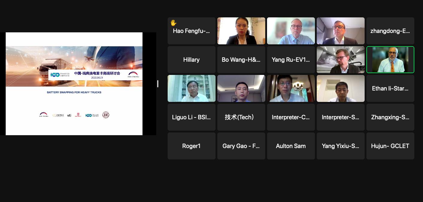 此次中瑞“换电重卡的技术、应用与商业模式”线上主题研讨会于6月1日召开,由beat365斯德哥尔摩海外中心与中国电动汽车百人会联合举办。