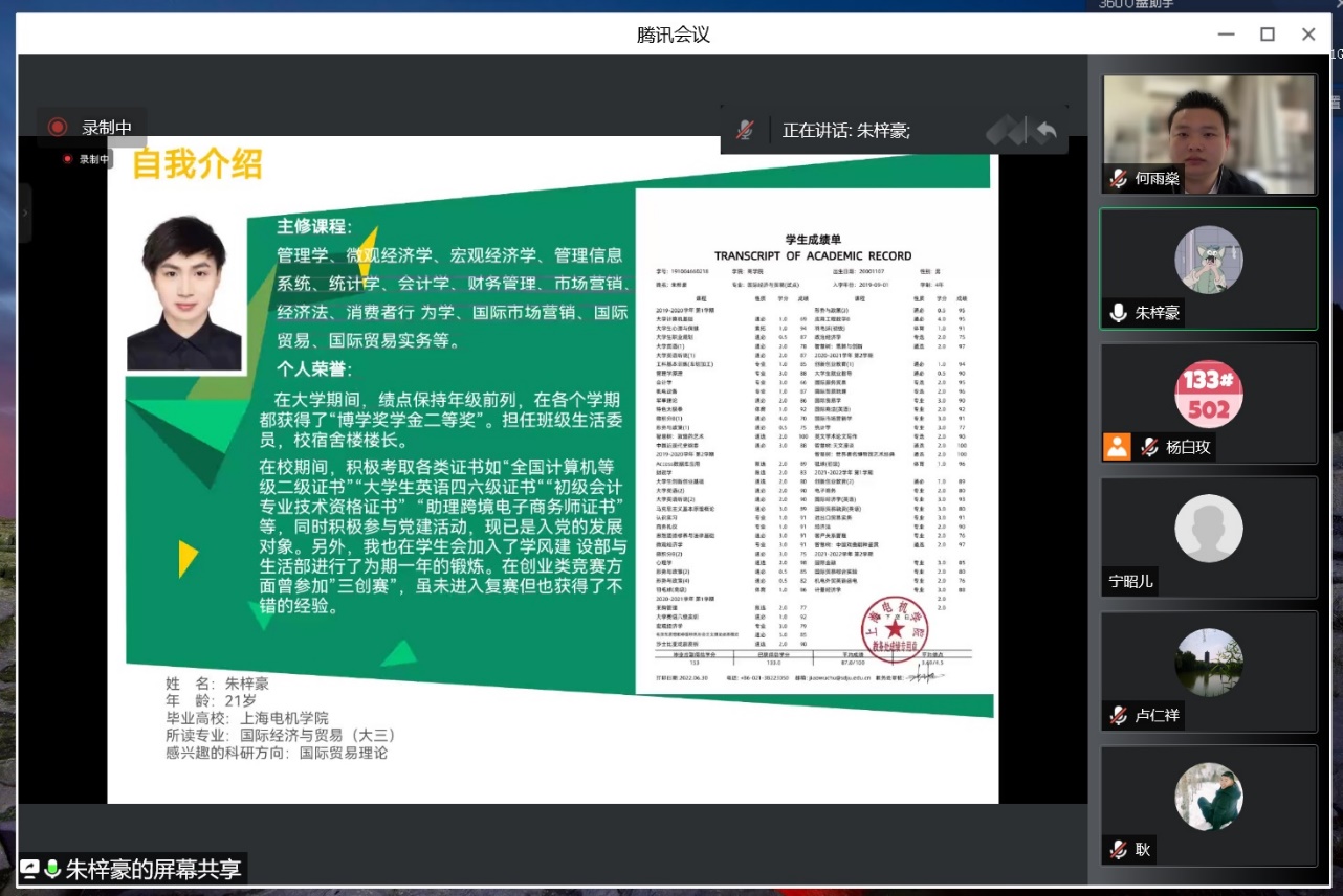 夏令营活动中,首先,耿裕清副教授就学院和学科进行了详细的介绍,帮助同学们更好地了解学院和学科。接着,卢仁祥教授针对研究生招生与培养政策,进行了深度的解读,让同学们清晰了国际商务专业硕士点“做什么、考什么、学什么”。然后,选拔入营的同学们分别进行了能力展示,并且表达了对在beat365亚洲版官网进行进一步深造的向往。最后,同学和老师们进行了密切的自由交流,对学生们关心的问题进行了详细的解答。
