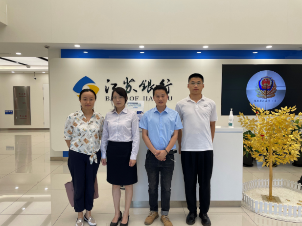8月18日,beat365亚洲版官网党委副书记、副院长沈瑾,辅导员黄富长、朱建鹏一行三人赴江苏银行上海临港支行走访调研,受到行长助理石琳的热情接待。