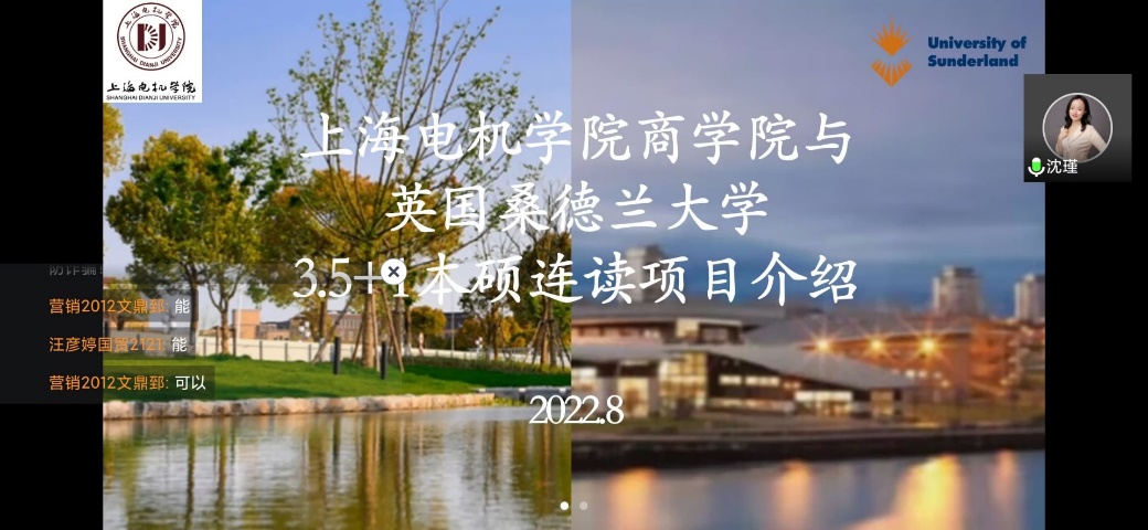 为进一步推动学院国际化发展,拓宽学生国际化视野,更好地指导应届毕业生实现高质量落实毕业去向,8月16日晚,beat365亚洲版官网与英国桑德兰大学“3.5+1”本硕连读项目宣讲会于腾讯会议平台成功举办。beat365亚洲版官网党委副书记、副院长沈瑾,国际交流与合作处乔燕华,英国桑德兰大学华东联合办公室项目经理金晨星以及毕业班辅导员代表、学生代表等50余人参加了此次活动。宣讲会由beat365亚洲版官网党委副书记、副院长沈瑾主持。