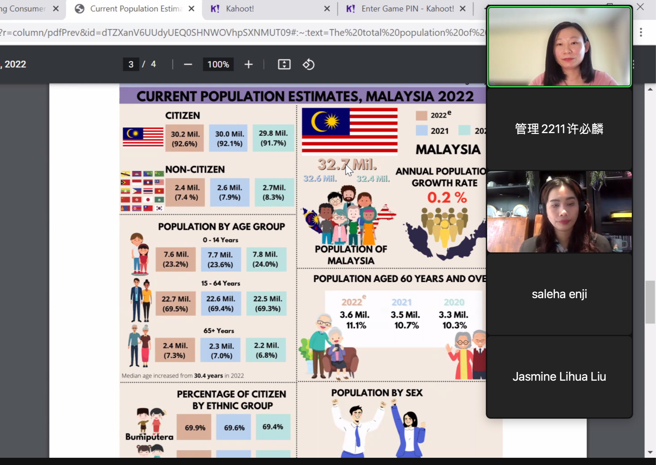 刘莉华老师以Understanding international customers ——learnings from the Chinese context 为题,探讨了文化情景对国际市场消费者的影响,剖析了中华农耕文明的起源、特点及其对中国消费者的影响,最终,专题讲座以中国消费者的新特色结束。刘莉华老师的报告,令马来西亚学生对中国悠久的历史文化有了更深刻的理解。