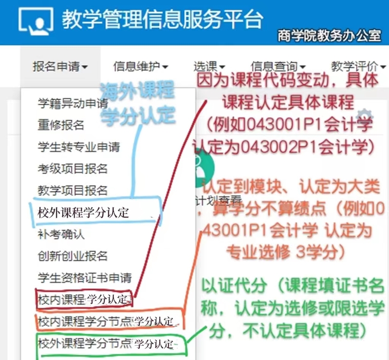 1.校内课程学分认定(一门课程提交一条)