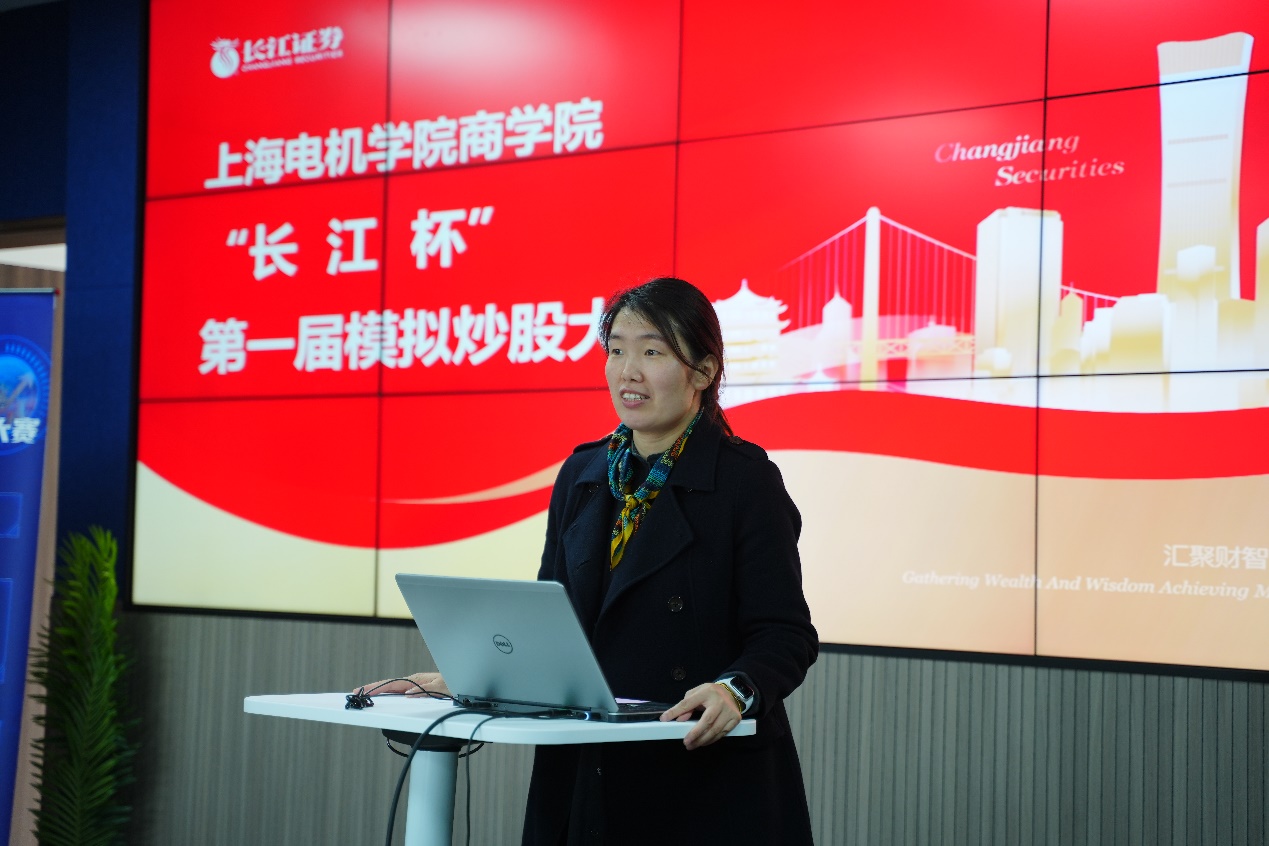 长江证券上海临港新片区营业部渠道负责人文雯从活动目的、活动概述、活动细则、活动奖励等方面对本次大赛进行了解读,并与现场学生做互动交流。