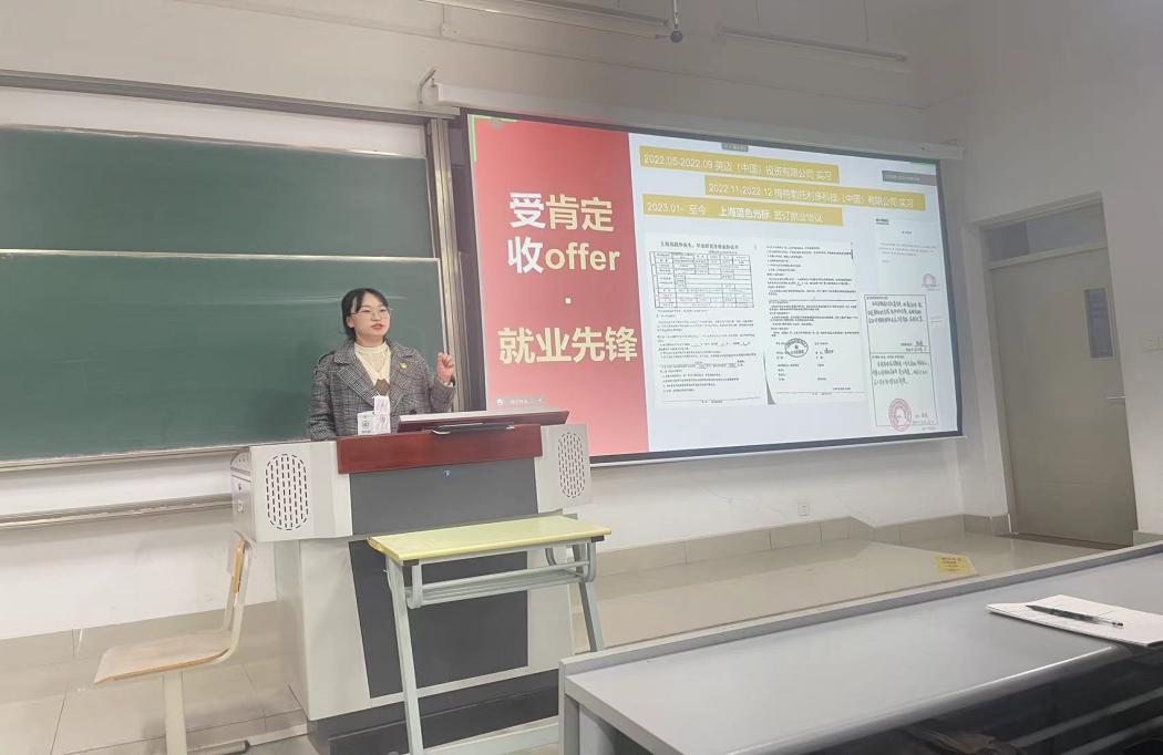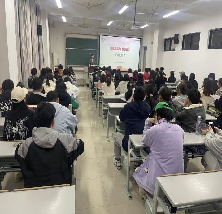 潘飞飞以党员发展的时间轴为切入点,结合自身担任学生干部、参加“科创比赛”以及参与志愿服务的体验,详细阐述了其大学期间的成长过程。她表示,成为一名党员要不断提升自己的思想觉悟,在学业上为身边的同学做好榜样,尤其是学生骨干,要有想法、有执行力,有奉献精神,以实际行动积极向党组织靠拢。临近尾声,潘飞飞以求职应聘的亲身经历,向与会学员讲解了求职礼仪与简历修改技巧,并与现场学生作互动交流。