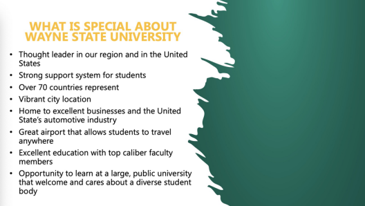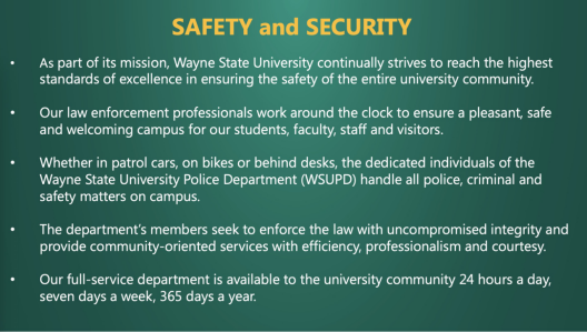 Professor Joey showcased the city of Detroit and its cultural customs, allowing students to further understand the surrounding environment of the school and the specific measures taken by the school to ensure the safety of the entire university community for student safety.