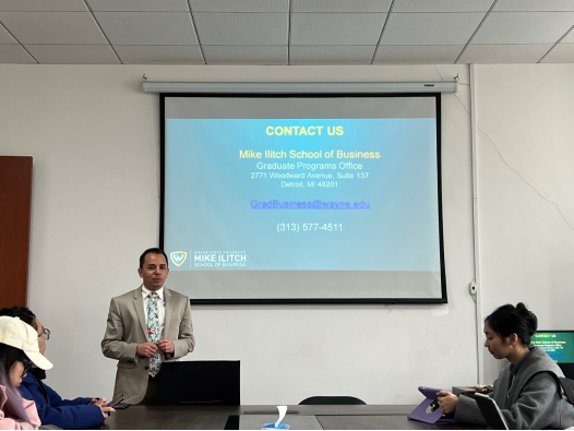 Professor Joey, Vice Dean of the McIlrich School of Business at Wayne State University in the United States, introduced the disciplinary development and master's program overview of McIlrich School of Business, and explained its top ranked majors in the United States and the world.