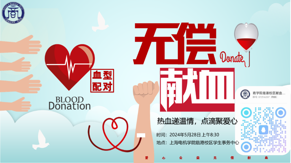 我们学院的献血时间是5月28日上午8:30,报名请进QQ群:872516387,完成献血报名表填写。