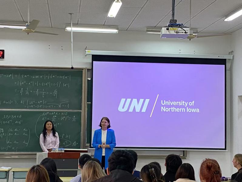 On March 17th, Beijing time, Mary Connerley, Dean of the Business School at the University of Northern Iowa in the United States, and Professor Cheng from the International Office, led four outstanding American student representatives from the Business School to visit the School of Business at Shanghai Dianji University. Under the guidance of Professor Wang and Professor Cai, the responsible persons for China and the United States, a lecture was held for professional students from China and the United States.