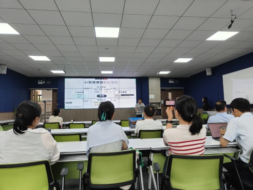 本次培训以“AI赋能教育教学暨数智化课程建设”为主题,旨在帮助教师掌握人工智能技术在教学中的应用,推动课程数字化转型与创新。吴威猛老师结合前沿案例,详细讲解了AI工具在教学设计、课堂互动、学习评估等环节的实践策略,并现场演示了数智化课程建设的操作流程。线上、线下的与会教师积极参与互动,就AI技术如何优化教学效果、提升学生学习体验等问题展开了深入探讨。