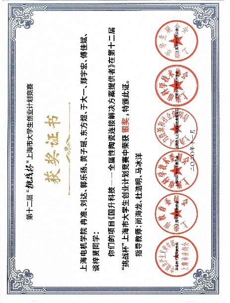 第六届中国国际“互联网+”大学生创新创业大赛上海赛区金奖 | 第十二届“挑战杯”上海市大学生创业计划竞赛银奖 |