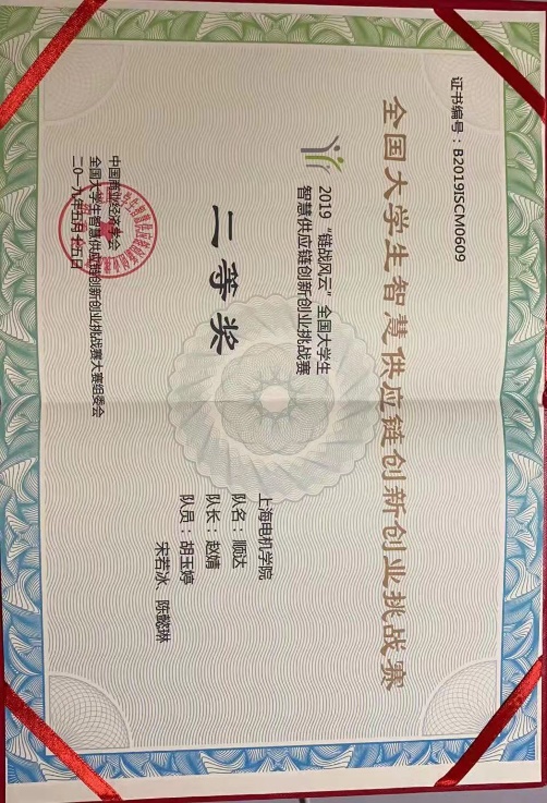 全国大学生智慧供应链创新创业挑战赛二等奖 | 第九届全国大学生电子商务“创新、创意及创业”挑战赛上海赛区挑战赛特等奖 |